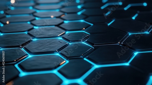 Obraz premium Futuristic hexagonal pattern with glowing blue edges