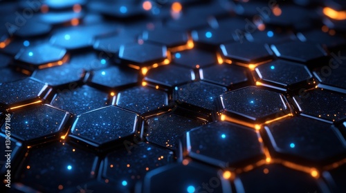 © NhV, Obraz premium futuristic hexagonal pattern with glowing blue highlights
