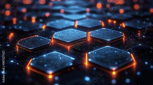 Obraz premium Futuristic hexagonal pattern with glowing edges, perfect for technology,...