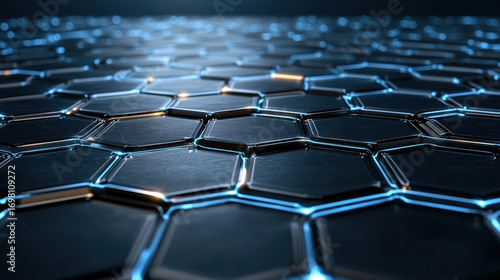 Obraz premium Futuristic hexagonal pattern with metallic surface and glowing edges creates...