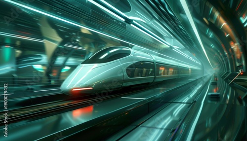 © V Art, Fototapeta premium Futuristic high-speed train traveling through a sleek, illuminated tunnel showcasing advanced transportation technology