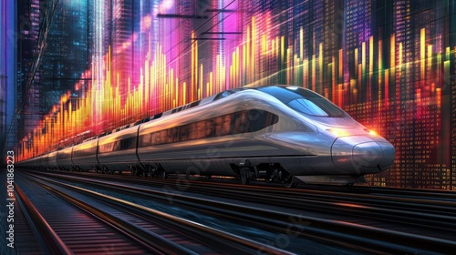 © Nejron Photo, Naklejka premium Futuristic high-speed train with bright city lights