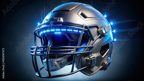 Naklejka premium Futuristic high-tech American football helmet with built-in sensors and LED...