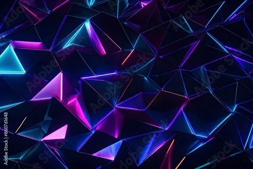© Awan, Obraz premium Futuristic, High Tech, dark background, with a triangular block structure. Wall texture with a triangle tile pattern-