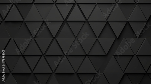 Fototapeta premium Futuristic High-Tech Dark Background with Triangular Block Structure, 3D Wall Texture featuring Tile Pattern of Triangular Shapes, Modern and Sleek Design, Digital Artwork for Technology and Architect