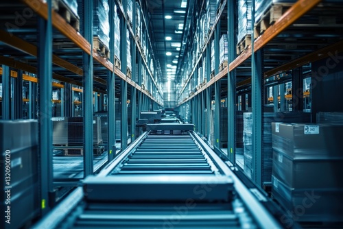 Fototapeta premium Futuristic high-tech warehouse featuring advanced automated systems for...