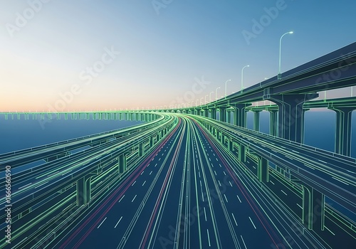 Fototapeta premium Futuristic Highway Overpass System, Digital Art, Abstract Design.