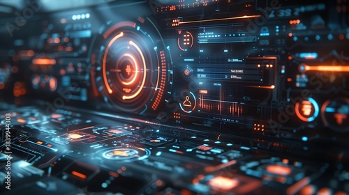 © Ummeya, Obraz premium Futuristic hologram user interface with floating icons and data