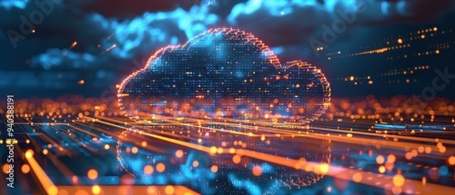 Fototapeta premium Futuristic Holographic Cloud Computing Network Concept with Interconnected...