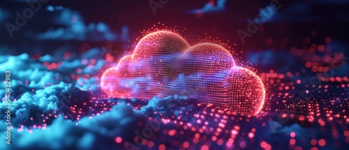 Fototapeta premium Futuristic Holographic Cloud Computing Network with Luminous Data Paths in...
