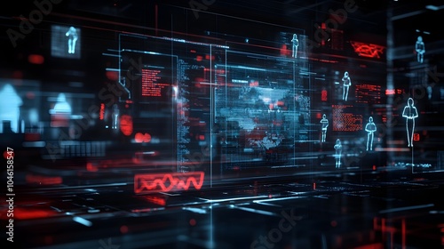 Obraz premium Futuristic holographic data visualization interface displaying digital...