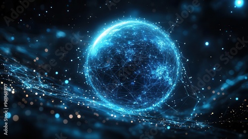 Obraz premium futuristic holographic globe intricate data streams glowing connection points translucent blue interface floating in dark space