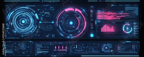 Fototapeta premium Futuristic holographic interface with data displays and digital graphics