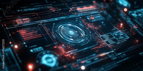 Fototapeta premium Futuristic holographic interface with glowing lines and data visualization of ai