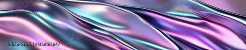 Fototapeta premium Futuristic holographic metallic surface with iridescent waves for modern...