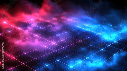 Fototapeta premium "Futuristic Holographic Neon Grid: Vibrant 80s-Style Glow with Shimmering...