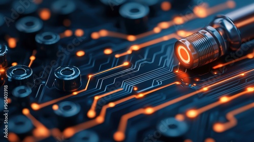 © Arthur Constantine, Fototapeta premium Futuristic Holographic Oil Production Interface with Dark Tech Background -
