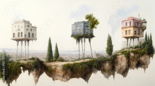 Obraz premium Futuristic homes on elevated platforms overlooking a vast cityscape