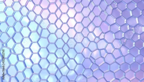 Naklejka premium Futuristic Honeycomb Holographic Texture, Soft Pastel Gradients, Digital Art, Abstract, Modern Design