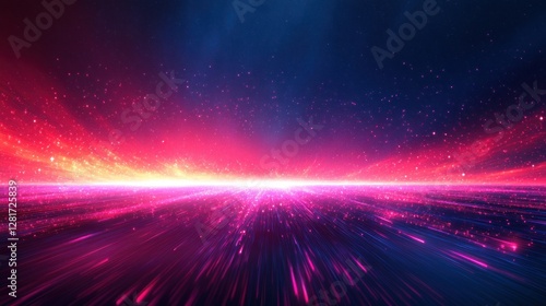 © Lemdah, Naklejka premium Futuristic horizon, energy glow, cosmic particles, night, background, design