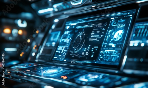© Valentyna, Obraz premium Futuristic HR interface over blue