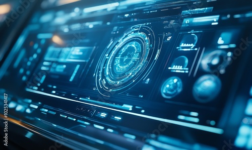 © Александр Михайлюк, Obraz premium Futuristic HR interface over blue