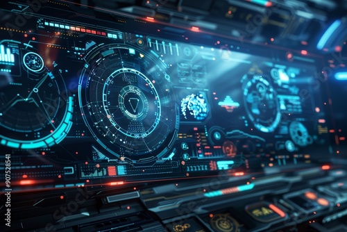 © nupam, Obraz premium Futuristic HR interface over blue, Generative AI
