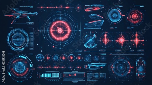 Fototapeta premium Futuristic hud design elements for space ship, drone, or radar interface. Can...
