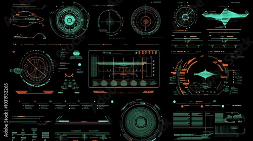Fototapeta premium Futuristic hud design elements for space ship, drone, or radar interface. Can...