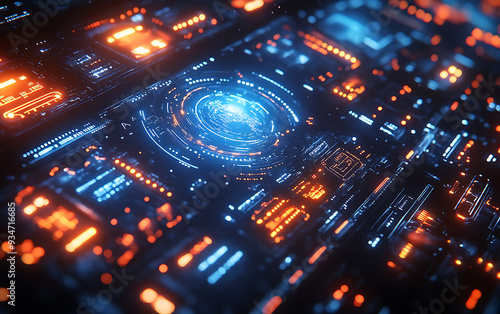 © udayanga, Obraz premium Futuristic HUD Interface: Blue & Orange Digital Elements
