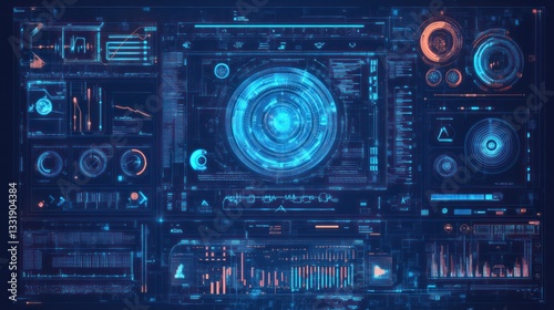 Fototapeta premium Futuristic HUD interface with glowing blue and orange digital elements,...