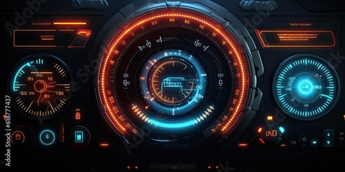 © Miguel Aguirre, Obraz premium Futuristic HUD screen data hologram. Generative AI