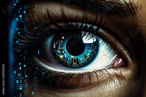Obraz premium Futuristic human eye biometric screening for advanced digital security