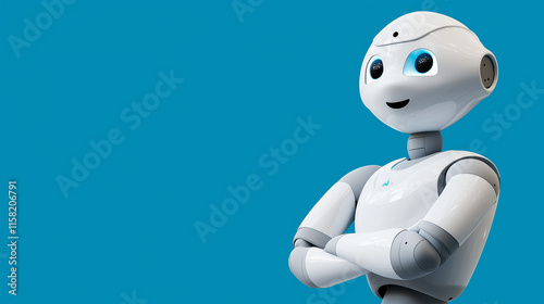Fototapeta premium Futuristic Humanoid AI Robot with Sleek White Metallic Body and Gradient Blue...