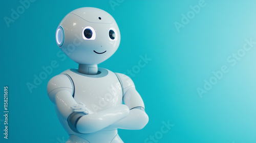 Obraz premium Futuristic Humanoid AI Robot with Sleek White Metallic Body and Gradient Blue...