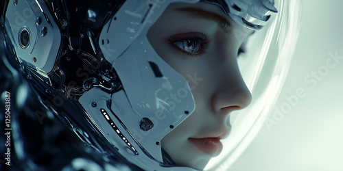 Fototapeta premium Futuristic Humanoid Robot – Advanced Artificial Intelligence and Robotics...