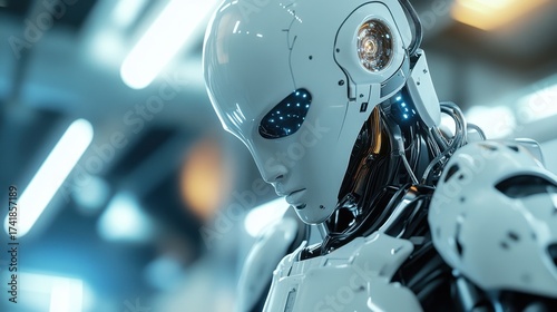 Fototapeta premium Futuristic Humanoid Robot with Sleek Design and LED Features