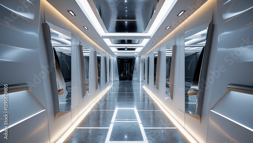© Elena, Obraz premium Futuristic illuminated corridor with sleek design
