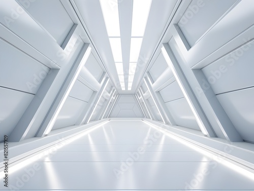 Fototapeta premium Futuristic Illuminated Geometric Corridor Interior with Bright Minimalist Design