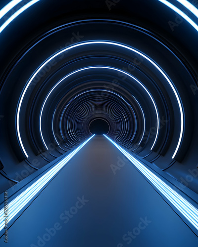 Obraz premium Futuristic illuminated tunnel perspective view.