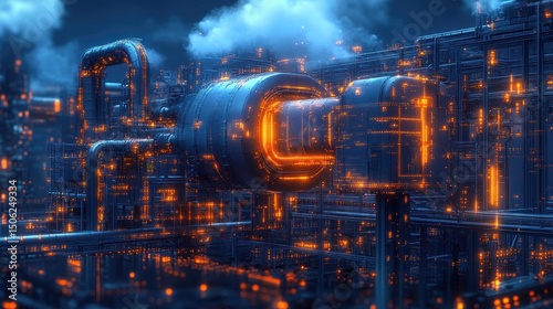 © Alfanachmad, Fototapeta premium Futuristic Industrial Complex: A Digital Metropolis of Light and Steel
