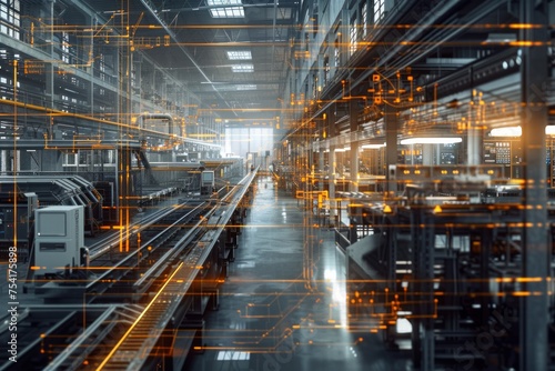 Fototapeta premium Futuristic industrial facility with digital overlays