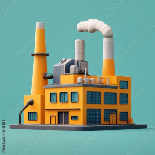 Obraz premium Futuristic Industrial Factory Building with Smokestack