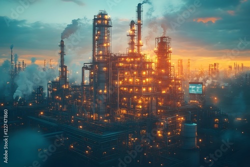 Fototapeta premium Futuristic Industrial Plant with Carbon Capture Technology Reducing Emissions