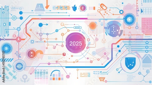 Naklejka premium Futuristic 2025 Infographic with Goals Plans Achievements Icons