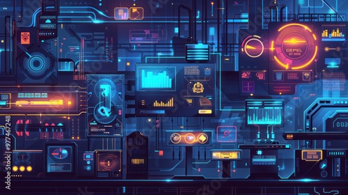 Obraz premium Futuristic Interface - Cyberpunk Control Room