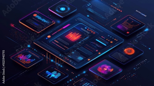 Fototapeta premium Futuristic Interface Design: Merging UX Elements with Vibrant Digital Art for...