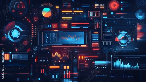 Fototapeta premium Futuristic Interface Design with Glowing Blue and Red Elements