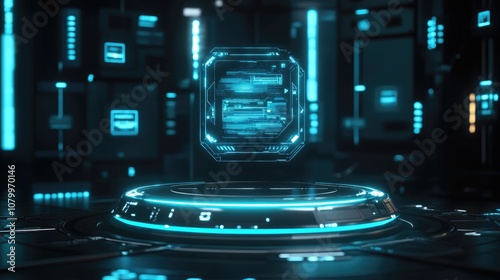 Obraz premium Futuristic Interface Design with Glowing Blue Lights - Abstract Technology...