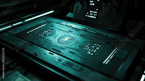 Fototapeta premium Futuristic Interface Design with Glowing Elements on a Dark Surface in a Sci-Fi Environment